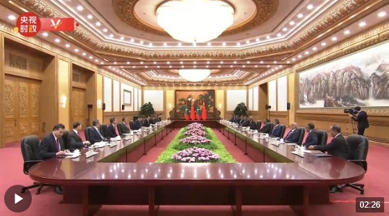 習(xí)近平指出,歡迎穆伊茲總統(tǒng)新年伊始對(duì)中國(guó)進(jìn)行國(guó)事訪問(wèn)??偨y(tǒng)先生曾多次訪華,致力于促進(jìn)中馬友好,大力推動(dòng)中馬共建“一帶一路”合作,是我們的老朋友了。你是我今年接待的首位外國(guó)元首,這次訪華也是你就任總統(tǒng)后對(duì)外國(guó)進(jìn)行的首次國(guó)事訪問(wèn),這充分體現(xiàn)了中馬兩國(guó)對(duì)發(fā)展雙邊關(guān)系的高度重視。