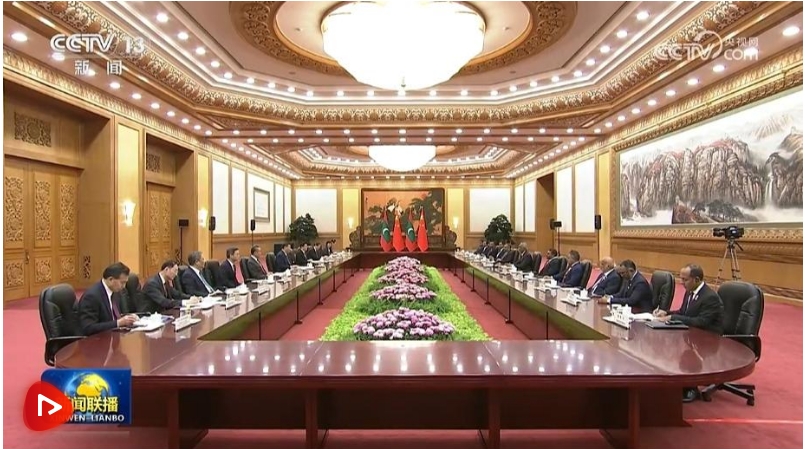 1月10日下午,國家主席習近平在人民大會堂同來華進行國事訪問的馬爾代夫總統(tǒng)穆伊茲舉行會談。兩國元首宣布,將中馬關系提升為全面戰(zhàn)略合作伙伴關系。