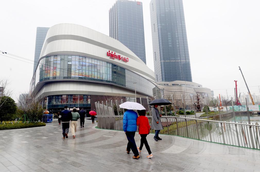 2024年1月20日市民走向上海市普陀區(qū)一家購物中心。新華社記者方喆 攝