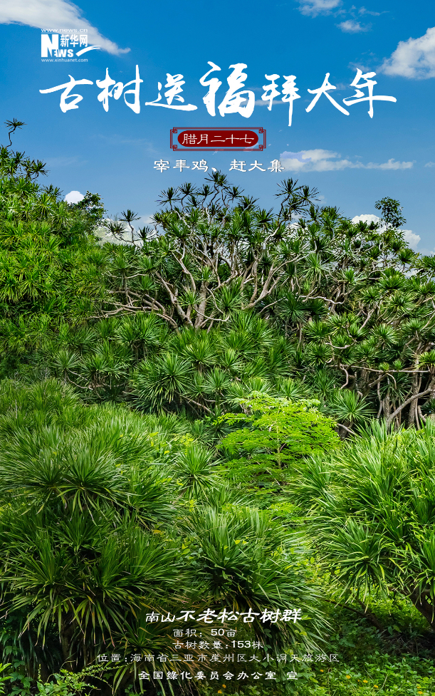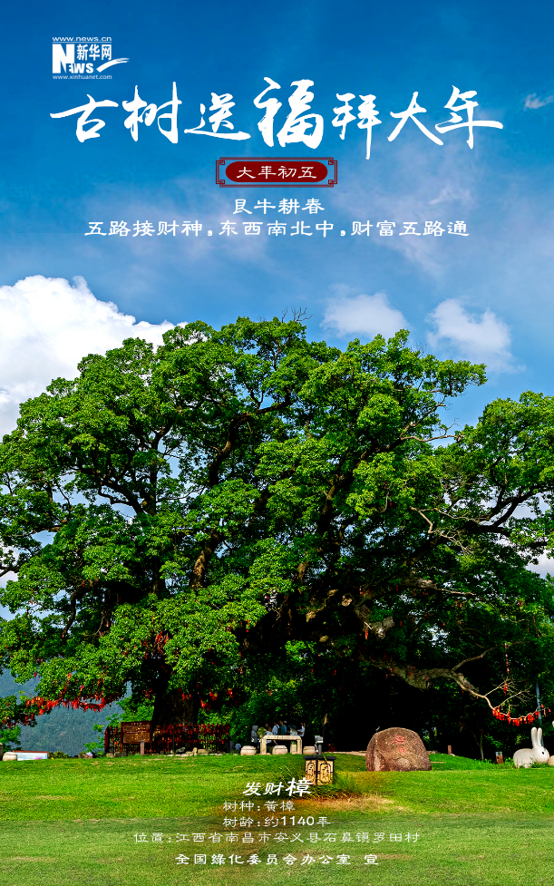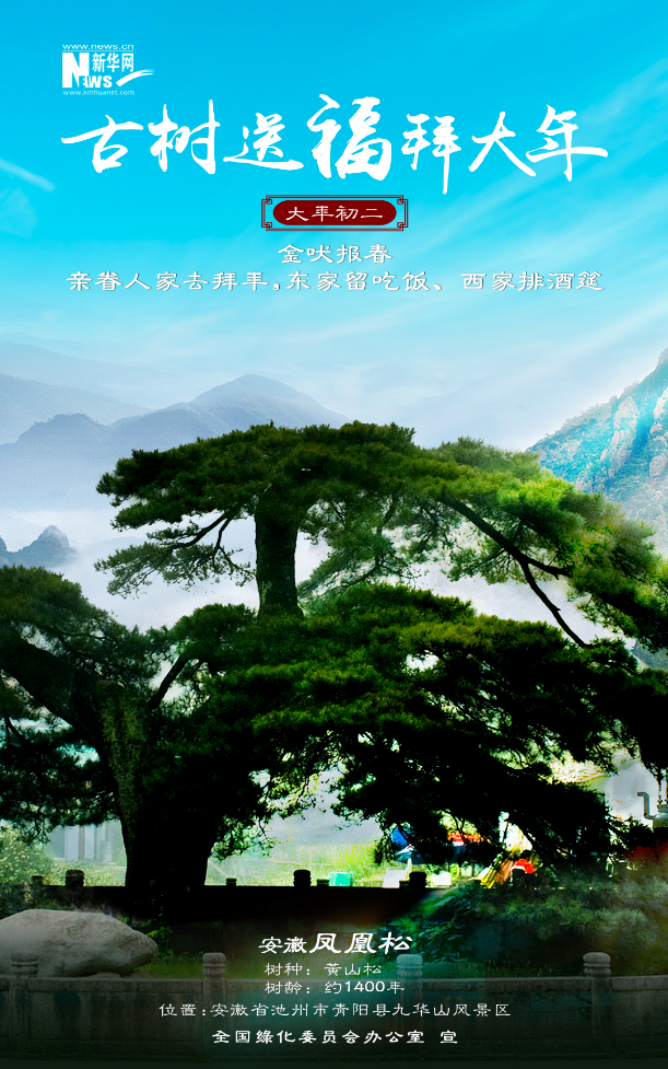今年春節(jié),新華網(wǎng)聯(lián)合全國(guó)綠化委員會(huì)辦公室,策劃推出“古樹送福拜大年”系列海報(bào)12張,選取寓意喜樂(lè)吉祥、文化底蘊(yùn)深厚、景觀自然絕美的古樹名木,結(jié)合中國(guó)春節(jié)習(xí)俗,給廣大網(wǎng)友拜年啦!