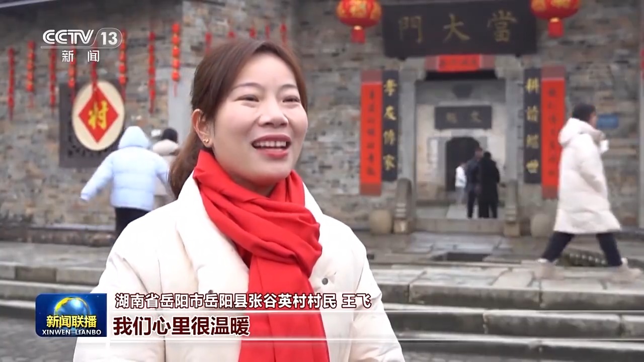 湖南省岳陽市岳陽縣張谷英村村民 王飛:總書記關心我們基層群眾年過得好不好,我們心里很溫暖,現(xiàn)在游客都愿意來,感受我們村的古韻和文化。對于來年的日子,我們大家都充滿信心,把日子過得更好。