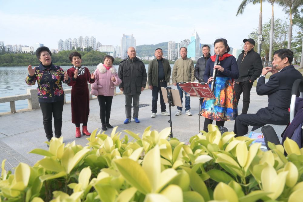 2024年1月24日,市民在位于廈門筼筜湖邊的南湖公園開展娛樂活動。新華社記者 林善傳 攝