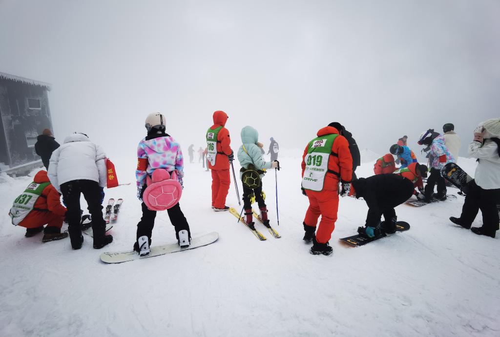2024年2月,“浙東第一尖”雪山歡樂谷游客正在體驗(yàn)滑雪。新華社記者顧小立 攝