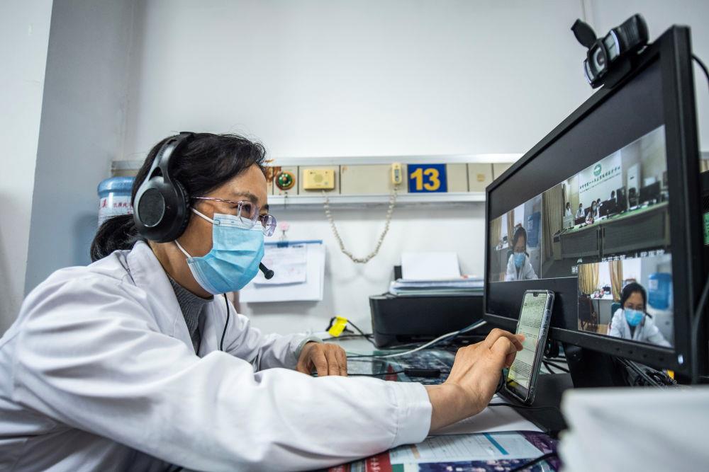 △2022年3月30日,貴州省人民醫(yī)院專家在和畢節(jié)市第一人民醫(yī)院醫(yī)生進(jìn)行遠(yuǎn)程醫(yī)療會(huì)診。
