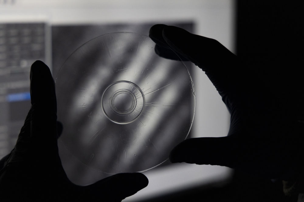 2024年2月29日在上海光機所光學(xué)實驗室拍攝的“超級光盤”。2月21日,中國科學(xué)院上海光學(xué)精密機械研究所對外宣布存儲容量是普通光盤上萬倍、普通硬盤上百倍的“超級光盤”誕生。據(jù)計算,十幾張“超級光盤”就可以存儲下整個國家圖書館的數(shù)據(jù)量。