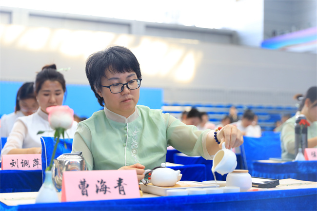 活動開始,12名女職工在悠揚的古箏樂聲中展示了茶藝表演,示范了行禮入座、溫杯燙盞、賞茶投茶、浸潤搖香、洗茶沖泡、分杯奉茶,每一個步驟都頗具韻味,每一個環(huán)節(jié)都充滿儀式感,讓在場的每個人都充分感受到茶藝的魅力。