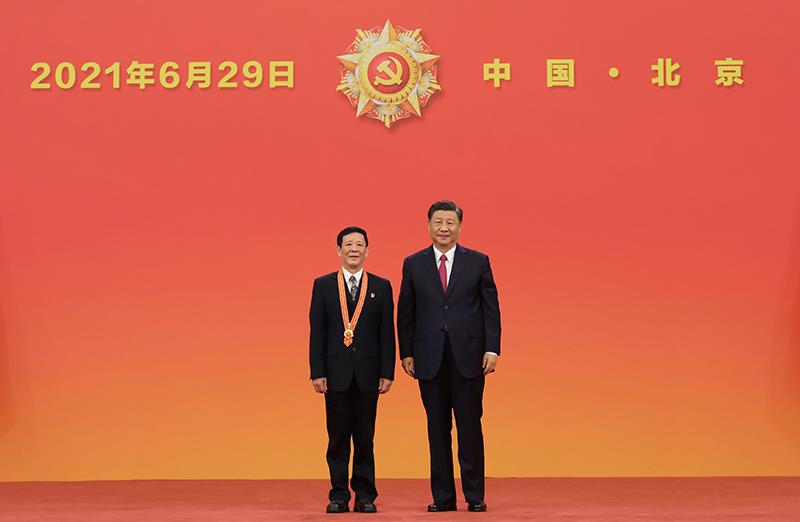 △2021年6月29日,習(xí)近平總書記向“七一勛章”獲得者艾愛國頒授勛章。
