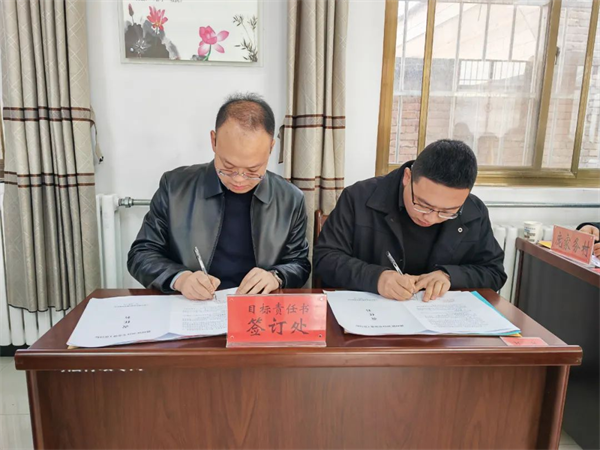 黨政主要領(lǐng)導(dǎo)與各村簽訂目標(biāo)責(zé)任書(shū),將指標(biāo)轉(zhuǎn)化為工作目標(biāo),將壓力轉(zhuǎn)化為工作動(dòng)力,將責(zé)任轉(zhuǎn)化為工作使命,確保全年工作高線達(dá)標(biāo)。