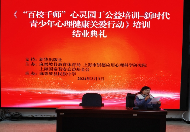 3月2日至3日,由滬文協(xié)作教學(xué)幫扶專家龔志珍同志牽線搭橋引進(jìn)的《“百校千師”心靈園丁公益培訓(xùn)——新時代青少年心理健康關(guān)愛》培訓(xùn)項目,在麻栗坡縣民族中學(xué)隆重舉行。