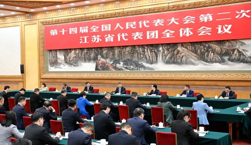 2024年3月5日,習(xí)近平參加他所在的十四屆全國人大二次會議江蘇代表團(tuán)審議。新華社記者 謝環(huán)馳 攝