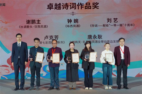 西部決策網(wǎng)訊(記者劉玉韓宗憲通訊員張?zhí)炝Ⅵ梦姆澹┰娋莆幕瑴嘏澜纭?月7日,以“詩酒飄香、悅享世界”為主題的“一帶一路”西鳳酒詩詞大會頒獎典禮在西安隆重舉行。中央電視臺原臺長,光明日報社原總編輯,第十屆中國文聯(lián)副主席胡占凡,著名作家、中國作家協(xié)會社聯(lián)部主任李曉東,中華詩詞學(xué)會常務(wù)副會長林峰,央視百家講壇主講人、鄭州大學(xué)文學(xué)院教授王士祥,中華詩詞學(xué)會評論部副主任,火箭軍工程大學(xué)原副校長杭中華,央視《中國詩詞大會》學(xué)術(shù)總負(fù)責(zé)人李定廣,中華詩詞學(xué)會顧問,陜西省詩詞學(xué)會會長孟建國,著名酒文化專家、山東社會科學(xué)院歷史所研究員王賽時,西北大學(xué)歷史學(xué)院副教授、中國文明史研究院研究員路中康。網(wǎng)易傳媒副總裁李淼,網(wǎng)易傳媒華北銷售中心副總經(jīng)理于洋。西鳳集團公司黨委書記、董事長、股份公司董事長張正,西鳳股份公司總經(jīng)理張周虎,西鳳集團公司黨委副書記、工會主席郭拴新,西鳳股份公司副總經(jīng)理周艷花、高亞蘭,西鳳酒股份有限公司總文化顧問高洪濤以及《人民日報》、新華社、新浪、網(wǎng)易、鳳凰網(wǎng)、《華爾街日報》、英國衛(wèi)報、中國經(jīng)營報、每日經(jīng)濟新聞、北京日報、陜西日報等50多家媒體代表,詩詞愛好者參加會議。新華直播、網(wǎng)易新聞、西鳳股份公眾號、抖音平臺對大會進行了現(xiàn)場直播。