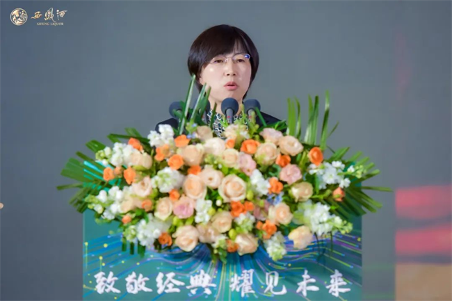 股份公司總工程師馮雅芳作“金獎西鳳酒”品質(zhì)解讀,她從“13456品質(zhì)密碼”、設(shè)計理念、精湛的工藝、精美的酒體等方面向與會嘉賓作全面解讀。