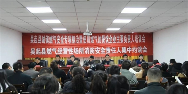 3月14日,吳起縣城管局聯(lián)合商務(wù)局、市場(chǎng)監(jiān)督管理局、公安局和消防大隊(duì)共同舉辦城鎮(zhèn)燃?xì)獍踩珜?zhuān)項(xiàng)整治暨使用燃?xì)獠惋嬈髽I(yè)培訓(xùn)會(huì),縣城所有餐飲企業(yè)和7小類(lèi)用氣企業(yè)負(fù)責(zé)人參加培訓(xùn)。