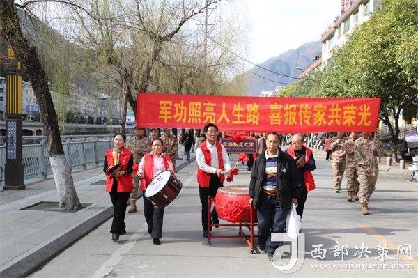 “喜報(bào)見證的是軍人至高無上的榮譽(yù),大張旗鼓地開展送喜報(bào)活動(dòng),決不讓軍人的成績和榮譽(yù)只停留在檔案袋里,在更大范圍彰顯‘榮譽(yù)感’、擴(kuò)大‘感召圈’,用實(shí)際行動(dòng)使關(guān)心國防、熱愛國防、建設(shè)國防、保衛(wèi)國防成為全社會(huì)的思想共識(shí)和自覺行動(dòng)。”鎮(zhèn)巴縣退役軍人事務(wù)局負(fù)責(zé)人鏗鏘有力的發(fā)言贏得了廣大軍民雷鳴般的掌聲。