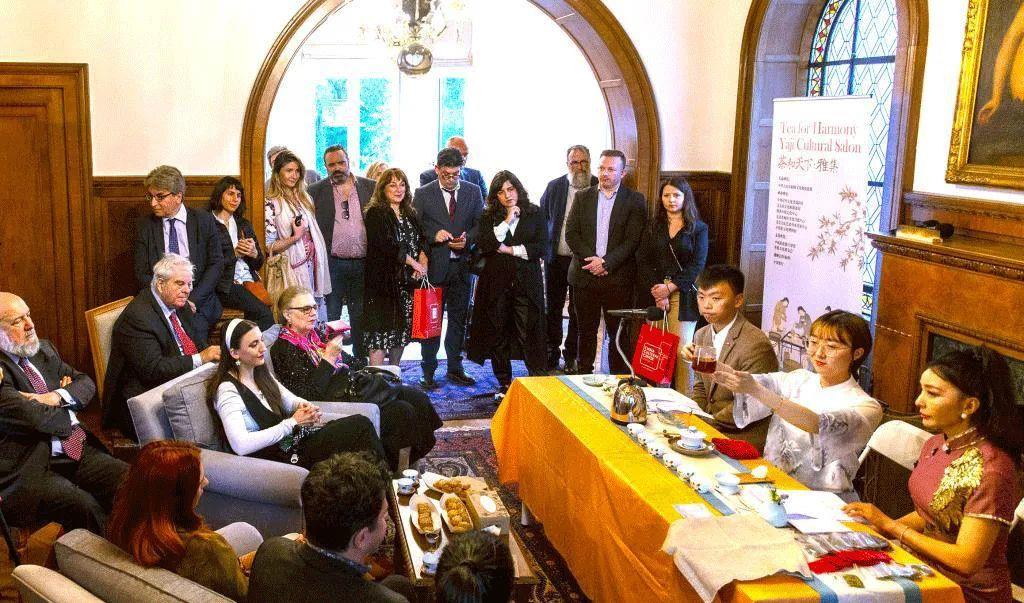 △2023年5月,希臘雅典,人們觀看中國(guó)茶藝表演。