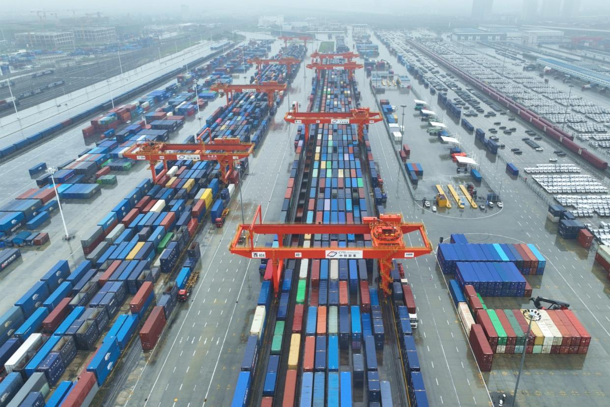 一排排集裝箱疊放整齊,大型龍門吊巨臂揮舞,集裝箱卡車往來穿梭……走進(jìn)西安國際港站,貨物運輸繁忙而有序。近日,隨著最后一個集裝箱吊裝至中歐班列上,中哈雙方合作共建的中歐班列哈薩克斯坦西安碼頭正式投入運營。滿載日用百貨、機械設(shè)備和新能源汽車等商品的中歐班列,一路向西,經(jīng)哈薩克斯坦、跨越里海,最終抵達(dá)阿塞拜疆巴庫。