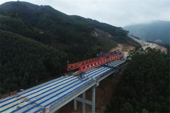 西部決策網(wǎng)訊 3月22日,中鐵一局三公司賀州北過境線項(xiàng)目長慶互通跨線橋右幅T梁架設(shè)順利貫通。