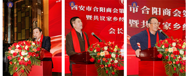 秦商總會(huì)執(zhí)行會(huì)長(zhǎng)劉阿津先生、西安市合陽(yáng)商會(huì)名譽(yù)會(huì)長(zhǎng)喬軍先生、北京鴻基世業(yè)集團(tuán)董事張志鴻先生作為來(lái)賓代表致辭。對(duì)新當(dāng)選的商會(huì)領(lǐng)導(dǎo)班子成員表示祝賀,未來(lái)大家會(huì)一如既往地?zé)釔?ài)關(guān)心合陽(yáng),宣傳支持合陽(yáng),共同為建設(shè)美好家鄉(xiāng)貢獻(xiàn)力量。希望商會(huì)和各位鄉(xiāng)友把個(gè)人發(fā)展與家鄉(xiāng)發(fā)展緊密結(jié)合起來(lái),帶領(lǐng)大家積極走出去,把“先進(jìn)技術(shù)”帶回來(lái)、把“優(yōu)質(zhì)項(xiàng)目”落下來(lái),為合陽(yáng)的高質(zhì)量發(fā)展賦能助力。